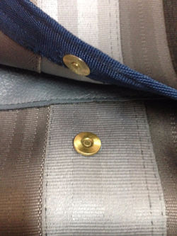![]() Cod.1973 | ![]() Cod. 3047Monedero confeccionado con cinturones de seguridad de vehículo. | ![]() Cod. 3497Bandolera realizada con cinturones de seguridad combinado en gris y negro, asa gris plateado regulable. Cierre con cremallera. |