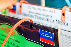 ![]() Cuero de calidad | ![]() Cod.8861Bolso realizado con portada de discos de vinilo, plásticos de distintos tipo, fondo de plástico cubre cristales con dibujo abstracto en negro translúcido y plata. Asa de cuero. | ![]() |